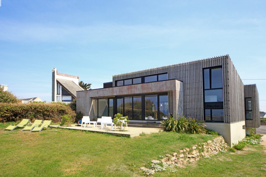 Die Villa Côte et Mer liegt an der Atlantikküste und bietet einen außergewöhnlichen Blick auf den Strand Theven in Santec. Dieses Architektenhaus ist zeitgemäß mit einem auf beheizten Pool mit Meerblick ausgestattet. Die gartenseitige Terrasse lädt zum frühstücken ein, während auf der meerseitigen Terrasse herrliche Sonnenuntergänge zu sehen sind. Vom Garten aus gibt es direkten Zugang zum Strand. Das Haus ist geräumig und weist ein großes Wohnzimmer zum Meer hin und 5 Schlafzimmern für bis zu 12 Personen auf.